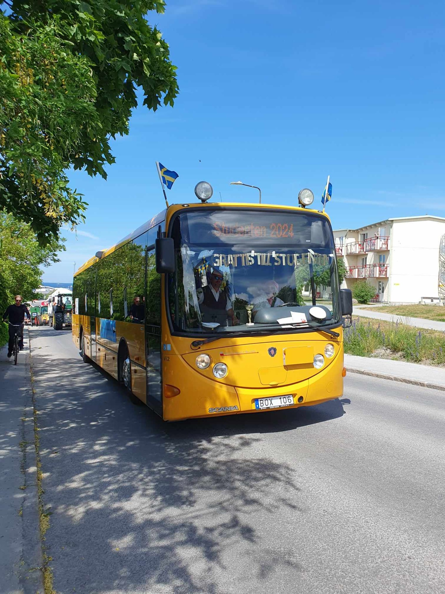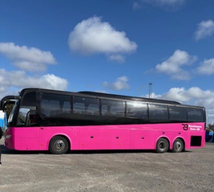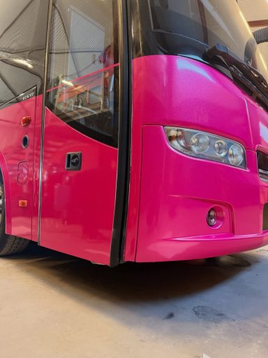 En liten glimt av vår rosa buss samt andra bilder från en körning jag gjorde 2024 då jag fick äran att köra Wisby Gymnasiets Anpassade skola i studentkortegen, en handikappsanpassad buss.